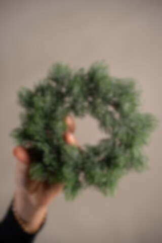 En dekorativ lärkkrans med frosteffekt som ger ett subtilt vinterintryck. Med sina 9 cm i höjd är den idealisk som del av en större dekoration eller som väggprydnad. Den gröna färgen kombineras med frost för ett elegant uttryck.