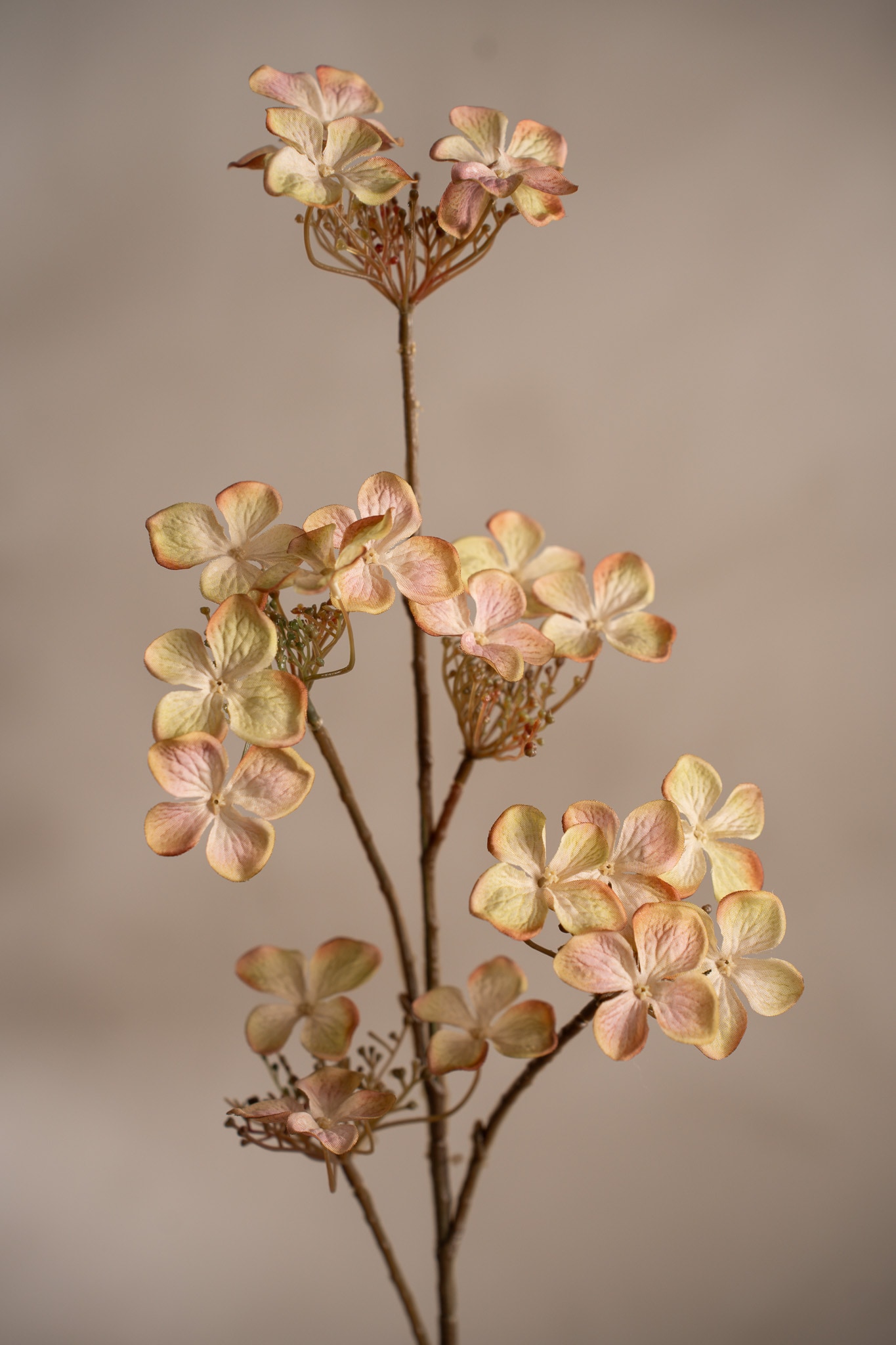En dekorativ Hortensia på 70 cm som tillför mjuka linjer och naturlig karaktär. Lika fin ensam som i större dekorationer.