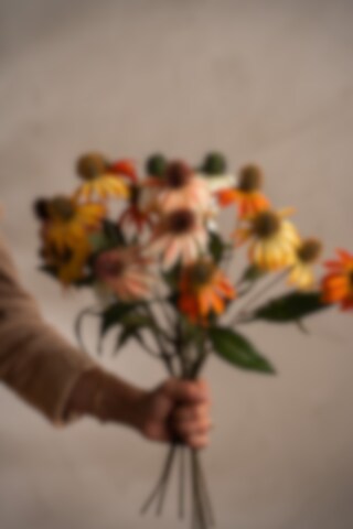 Denna Solhatt i gult är ett livfullt inslag i din inredning. Med sin höjd på 48 cm och färgstarka blommor skapar den ett varmt och glatt uttryck – helt utan skötsel.