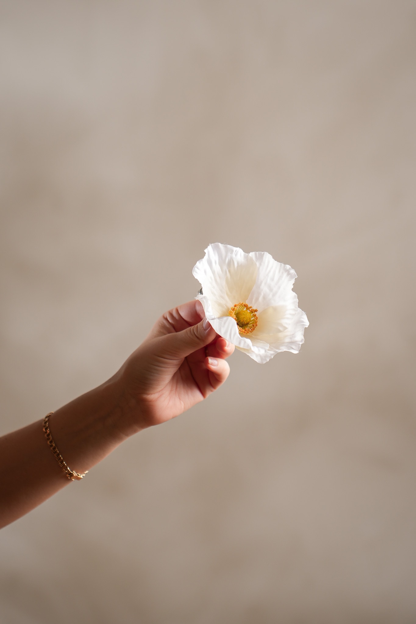 Vallmo med clips 7 cm, Cream. Enkel att placera.
