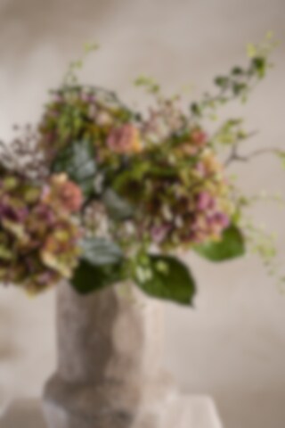 En klassisk hortensiabukett i gröna och lila toner som passar fint året om!