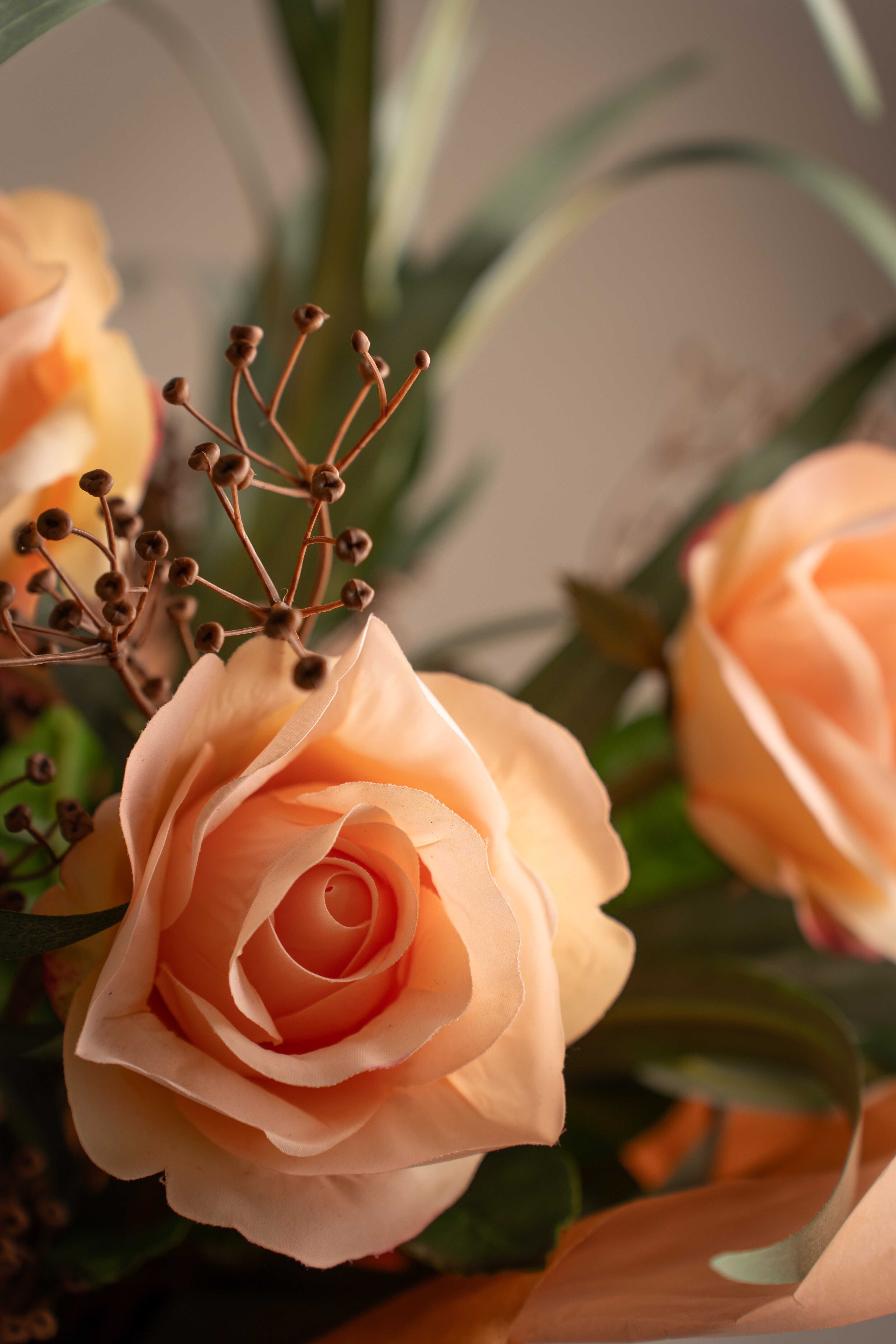 Ljuvliga rosor tillsammans med en spretig eucalyptus och Tallinum är en perfekt kombo och omtyckt av många!